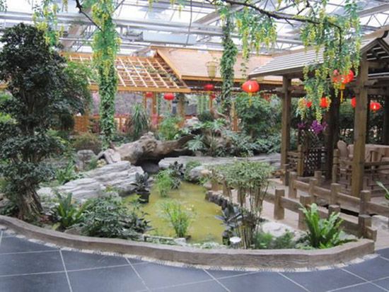 什么是溫室餐廳?為什么生態溫室餐廳這么火?下面青州七洲溫室科技來為您一一解答。在良好的保護設施中,能透過自然光照且溫度適宜,室內具有園林式的景觀配置以及花草,蔬果,園林植物的種植,造就了一個綠色的生態型就餐環境,這種餐廳稱之為溫室餐廳。把大自然豐富多彩的生態景觀微縮化和藝術化。綜合運用建筑學、園林學、設施園藝學等相關學科知識進行設計和建造,以設施環境調控技術和農藝栽培技術來維護餐廳的生態景觀。形成以綠色景觀植物為主,蔬、果、花、草、藥、菌為輔的植物配置格局,配以假山、疊水的園林景觀,立體全方位展現一個綠色優美宜人的就餐環境。網址www.qzqzwsgc.com