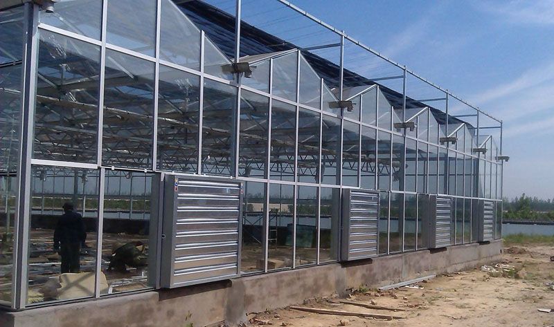 玻璃溫室通風目的主要是為了排除溫室的余熱及溫室內的水分, 調整溫室內空氣成分, 排除有害氣體,使溫室內的環境溫度、濕度和空氣等條件適宜植物生長的要求。