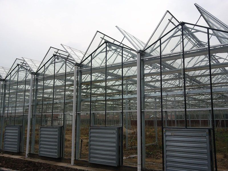 玻璃溫室通風(fēng)目的主要是為了排除溫室的余熱及溫室內(nèi)的水分, 調(diào)整溫室內(nèi)空氣成分, 排除有害氣體,使溫室內(nèi)的環(huán)境溫度、濕度和空氣等條件適宜植物生長(zhǎng)的要求。