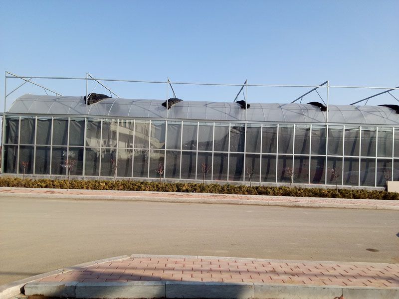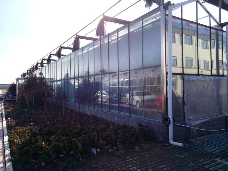 主體結構采用熱鍍鋅管材,覆蓋材料采用陽光板、普通或中空玻璃,采用溫室專用鋁合金型材鑲嵌,邊緣與鋁合金型材連接處采用抗老化乙丙橡膠條密封。