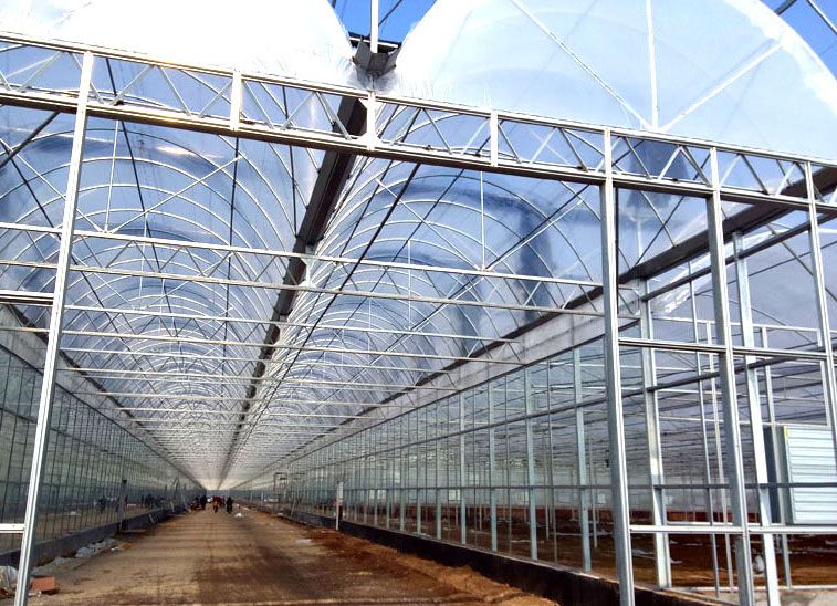 主體結構采用熱鍍鋅管材,覆蓋材料采用陽光板、普通或中空玻璃,采用溫室專用鋁合金型材鑲嵌,邊緣與鋁合金型材連接處采用抗老化乙丙橡膠條密封。